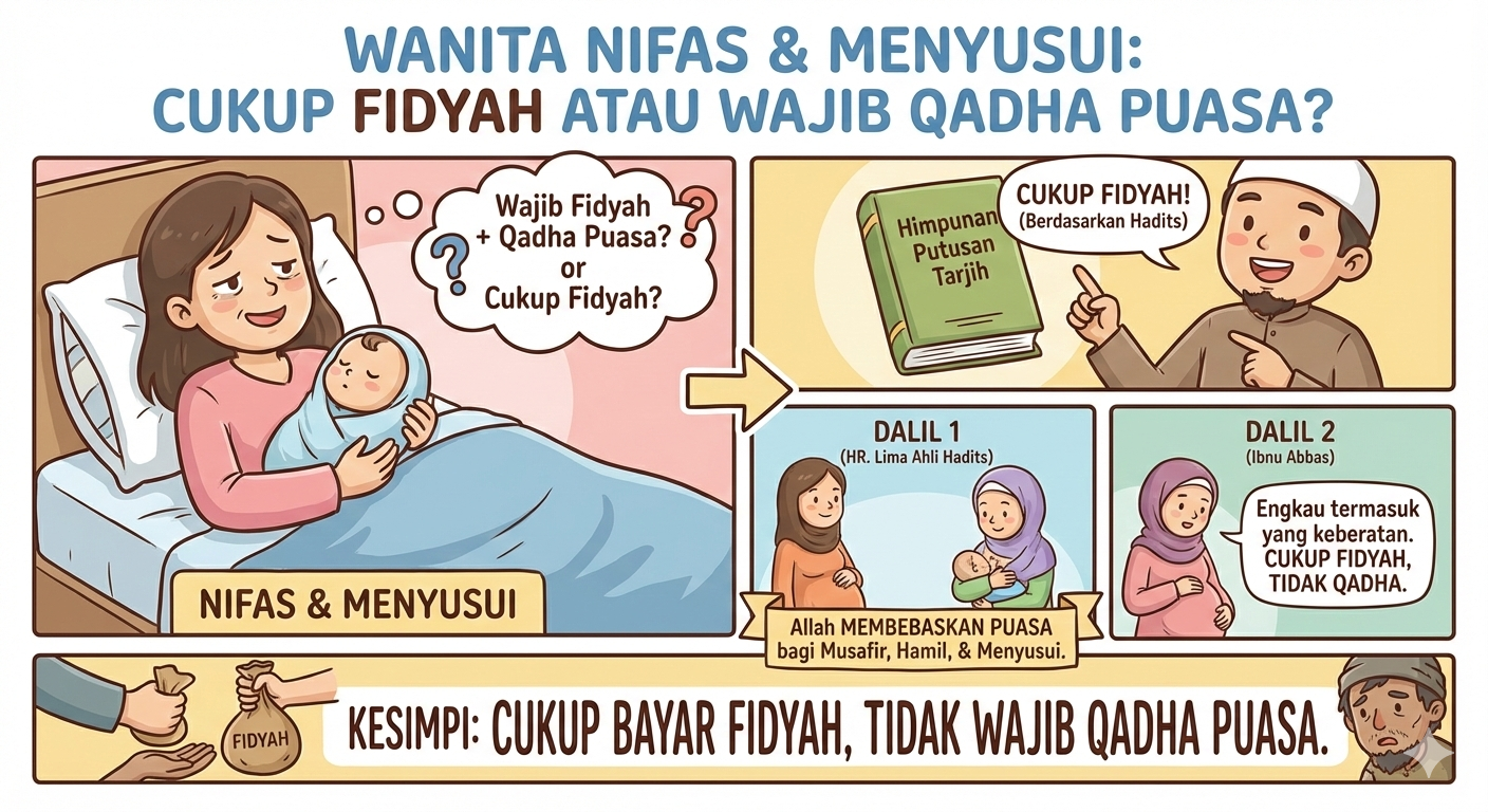 Ketentuan tersebut tercantum dalam Himpunan Putusan Tarjih pada halaman 170 dan 175, yang merujuk pada sejumlah dalil hadis sahih. Salah satunya adalah hadis riwayat Anas bin Malik al-Ka‘bi, yang menyebutkan bahwa Allah SWT memberikan keringanan puasa kepada musafir, perempuan hamil, dan perempuan menyusui.