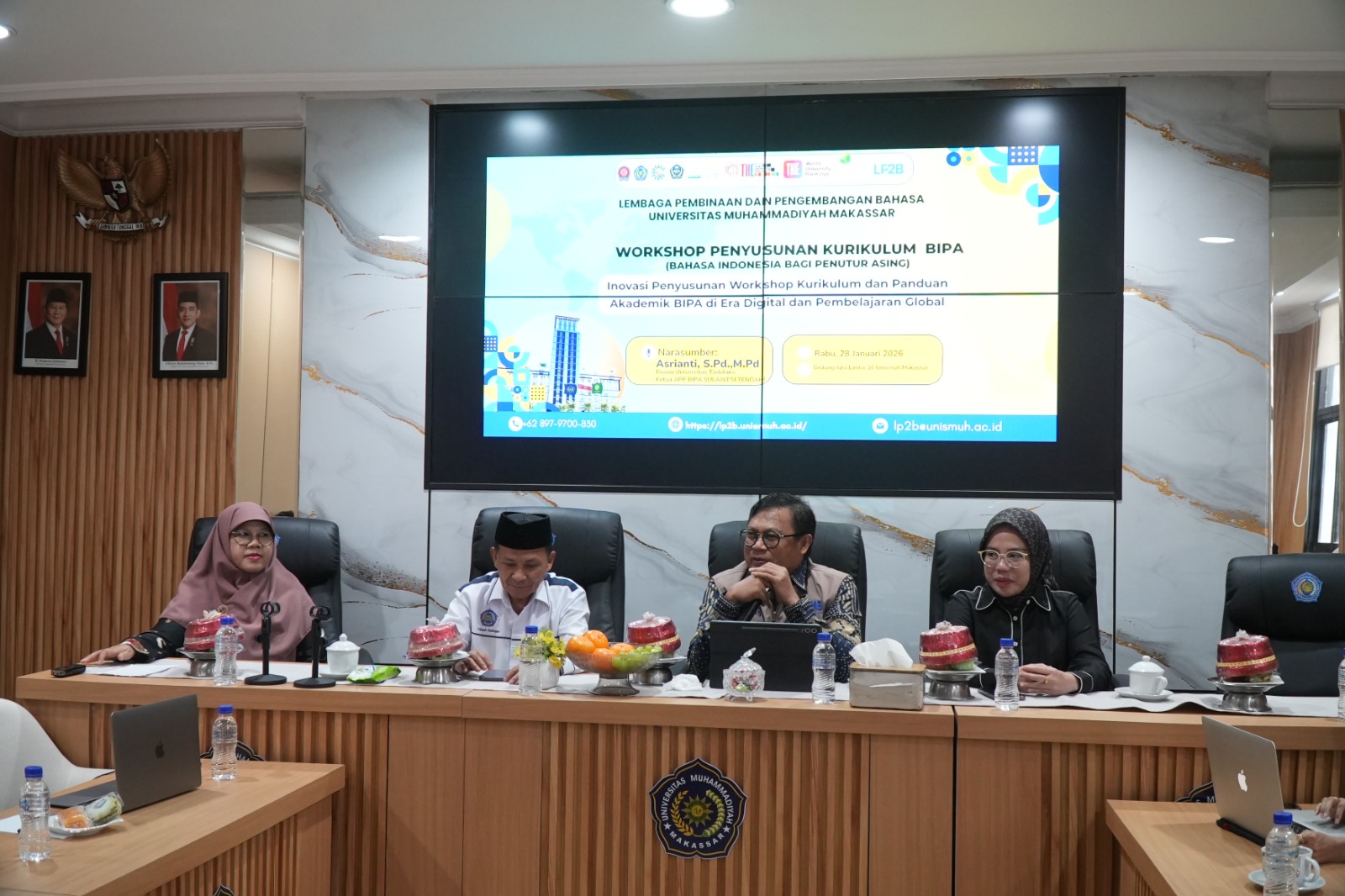 UNISMUH.AC.ID, MAKASSAR — Universitas Muhammadiyah Makassar (Unismuh) menggelar Workshop Penyusunan Kurikulum dan Panduan Bahasa Indonesia bagi Penutur Asing (BIPA). Acara dihelat di Ruang Rapat Wakil Rektor, Gedung Iqra Lantai 16, Kampus Unismuh Makassar, Rabu, 28 Januari 2026.