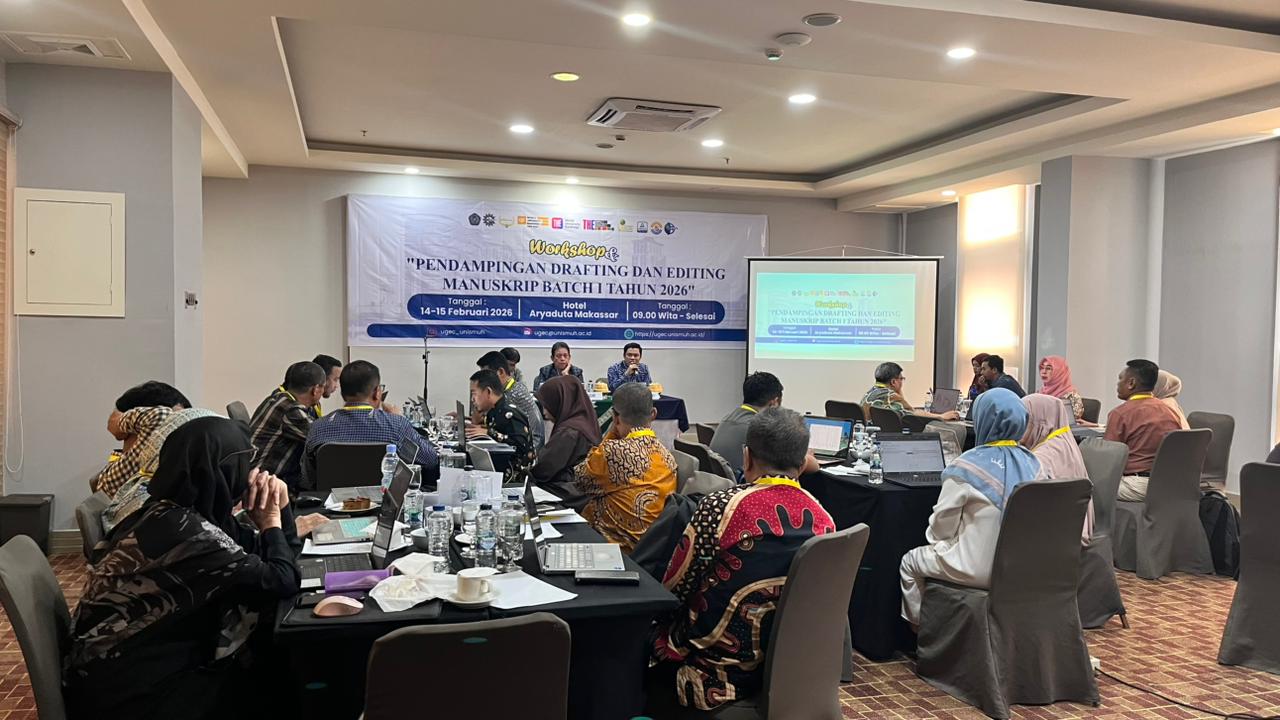 UNISMUH.AC.ID, MAKASSAR— Universitas Muhammadiyah Makassar (Unismuh) Makassar menggelar Workshop dan Pendampingan Drafting dan Editing Manuskrip Batch 1 Tahun 2026 pada 14–15 Februari 2026 di Hotel Aryaduta Makassar. Kegiatan ini difokuskan untuk mempercepat kenaikan jabatan akademik dosen dari Lektor Kepala menuju Guru Besar.