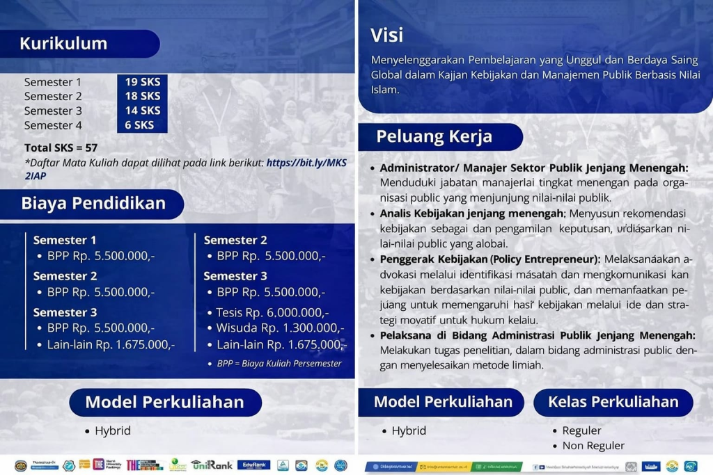 Untuk informasi lebih lanjut, calon mahasiswa dapat menghubungi kontak resmi Program Studi S-2 Ilmu Administrasi Publik melalui nomor 0812-4111-2551 (Prodi S-2 IAP), 0811-454-259 (LPMB), atau 0852-4264-6959 (RPL). Dengan fondasi akademik yang kuat dan orientasi pada kebutuhan sektor publik, program ini diharapkan terus berkontribusi pada pengembangan kebijakan dan tata kelola publik yang berkelanjutan.