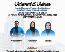 UNISMUH.AC.ID, MAKASSAR – Tim mahasiswa Program Studi Agribisnis Universitas Muhammadiyah Makassar (Unismuh) meraih juara pertama Lomba Esai National Agricultural Competition.