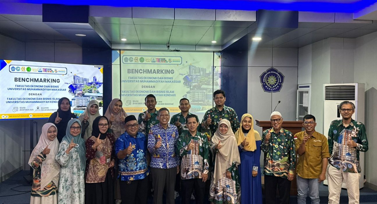 UNISMUH.AC.ID, MAKASSAR — Fakultas Ekonomi dan Bisnis (FEB) Universitas Muhammadiyah (Unismuh) Makassar menerima kunjungan benchmarking dari Fakultas Ekonomi dan Bisnis Islam (FEBI) Universitas Muhammadiyah Kendari, Selasa 28 Oktober 2025. Kegiatan berlangsung di Ruang Teater Lantai 2 Menara Iqra Unismuh Makassar dan difokuskan pada pertukaran pengalaman serta penguatan implementasi kurikulum Outcome Based Education (OBE) di lingkungan