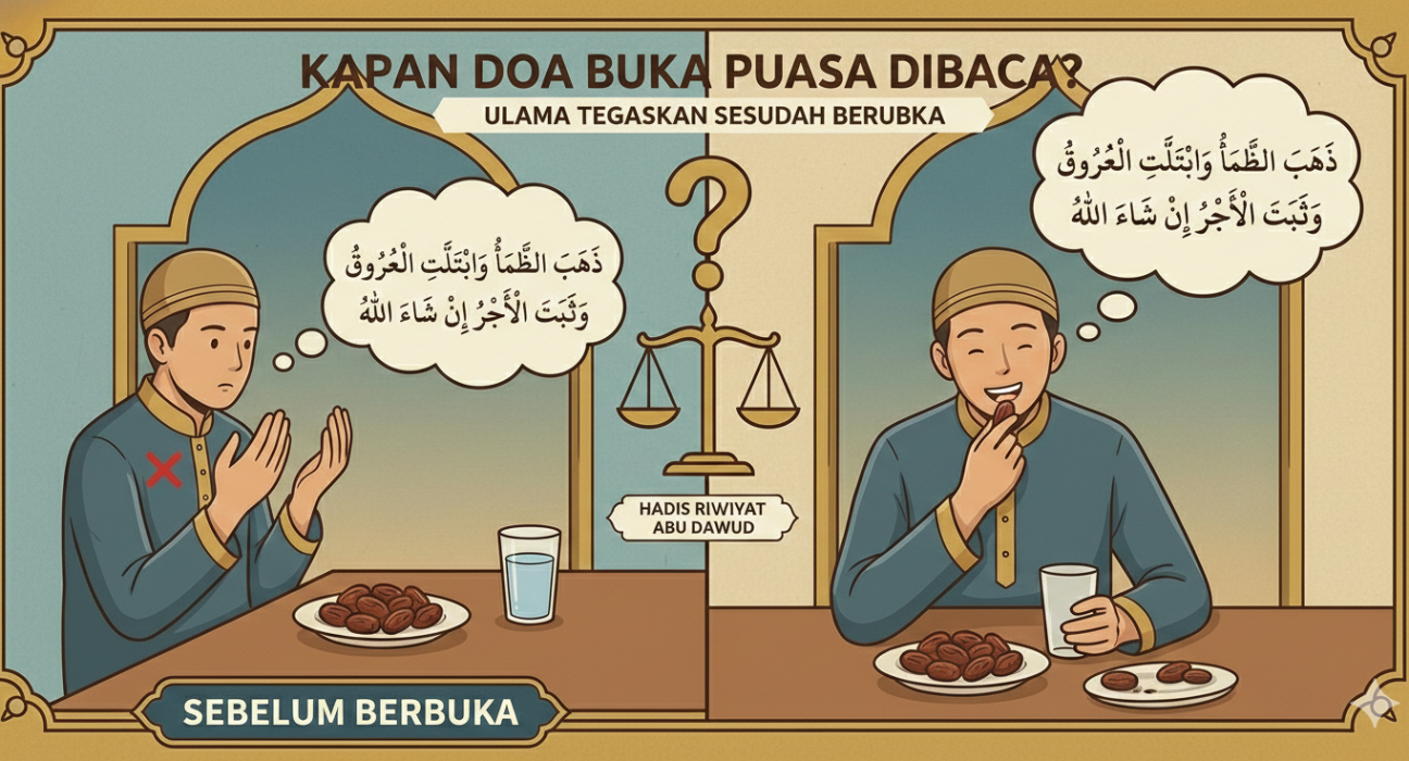 Praktik membaca doa sebelum berbuka puasa kerap dijumpai di berbagai masjid dan tempat ibadah selama bulan Ramadhan. Namun, tidak sedikit pula jamaah yang mempertanyakan ketepatan waktu pembacaan doa tersebut. Pasalnya, doa yang lazim dibaca saat berbuka dinilai lebih sesuai secara makna apabila diucapkan setelah membatalkan puasa. Doa berbuka puasa yang umum dibaca berbunyi “Dzahabazh-zhama’u wabtallatil-‘uruqu