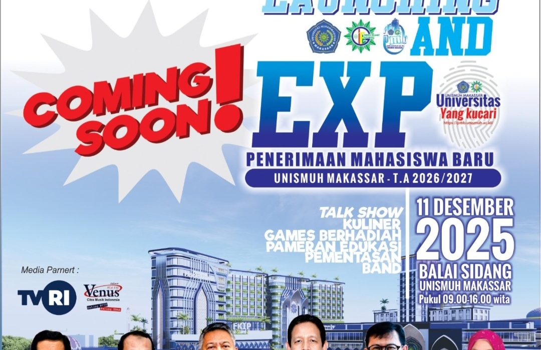 UNISMUH.AC.ID,. MAKASSAR — Universitas Muhammadiyah (Unismuh) Makassar menuntaskan persiapan pelaksanaan Launching dan Expo Penerimaan Mahasiswa Baru (PMB) Tahun Akademik 2026/2027. Kegiatan tersebut dijadwalkan berlangsung Kamis, 11 Desember 2025, di Kampus Unismuh Makassar, dengan target kehadiran sekitar 4.000 siswa dari 182 sekolah se-Sulawesi Selatan, termasuk kepala sekolah dan guru pendamping. Acara utama dipusatkan di Balai Sidang