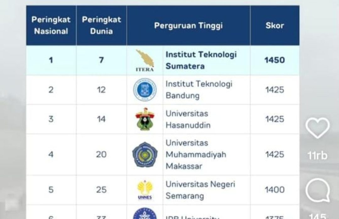 UNISMUH.AC.ID, MAKASSAR — Universitas Muhammadiyah (Unismuh) Makassar menembus peringkat 20 dunia dan peringkat 4 nasional pada kategori ruang terbuka dan infrastruktur hijau dalam pemeringkatan UI GreenMetric World University Rankings 2025. Capaian itu merujuk pada kategori Setting and Infrastructure yang menilai tata kelola ruang kampus, proporsi ruang terbuka hijau, dan dukungan infrastruktur berkelanjutan. Data resmi UI