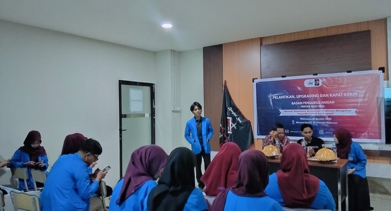 UNISMUH.AC.ID, MAKASSAR – Bengkel Sastra BASSI (Bahasa dan Sastra Indonesia), lembaga afiliasi Himpunan Mahasiswa Program Studi Pendidikan Bahasa dan Sastra Indonesia (Hima PBSI), menggelar rangkaian kegiatan pelantikan pengurus, upgrading, serta rapat kerja untuk masa bakti 2025–2026. Kegiatan ini digelar di Gedung Menara Iqra Lantai 10, Kampus Unismuh Makassar, Sabtu, 10 Januari 2026. Kegiatan ini menjadi