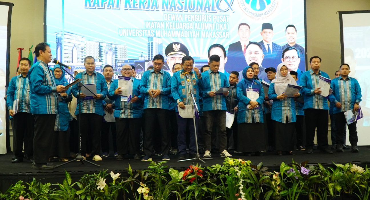UNISMUH.AC.ID, MAKASSAR — Pengurus Dewan Pimpinan Pusat (DPP) Ikatan Keluarga Alumni (IKA) Universitas Muhammadiyah (Unismuh) Makassar periode 2026–2030 resmi dilantik di Hotel Arya Duta Makassar, Kamis, 5 Februari 2026. Pengurus DPP IKA Unismuh dilantik oleh Rektor Unismuh Makassar Dr Abd Rakhim Nanda. Pelantikan dirangkaikan dengan agenda pembukaan Rapat Kerja Nasional (Rakernas) IKA Unismuh 2026 yang
