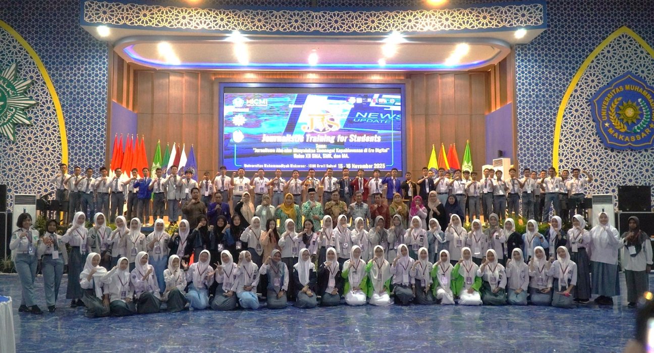 UNISMUH.AC.ID, MAKASSAR – Universitas Muhammadiyah Makassar (Unismuh Makassar) bekerja sama dengan Ikatan Cendekiawan Muslim se-Indonesia Wilayah Sulawesi Selatan (ICMI Sulsel) menyelenggarakan Pelatihan Jurnalistik untuk siswa SMA/SMK/MA kelas XII dari Makassar, Maros, dan Gowa. Kegiatan ini menjadi wadah peningkatan keterampilan literasi media serta penguatan kecakapan bermedia sosial bagi generasi muda. Pelatihan berlangsung pada 15–16 November 2025