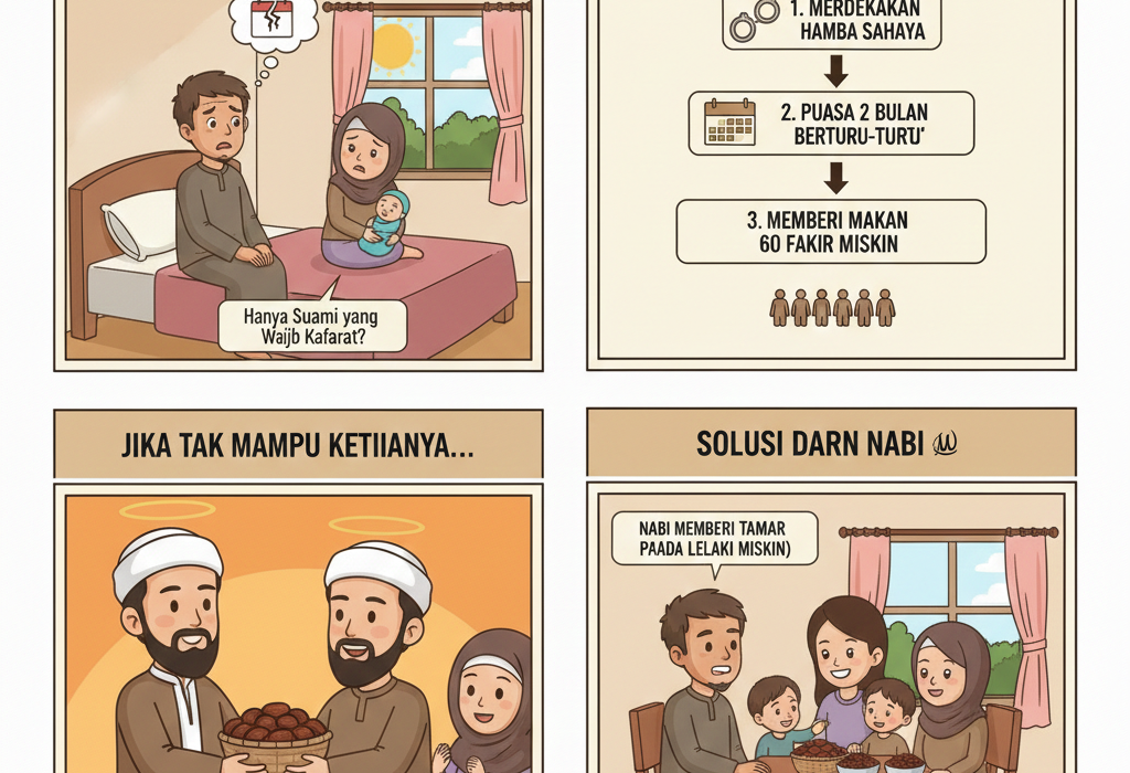 UNISMUH.AC.ID, YOGYAKARTA — Persoalan pelanggaran puasa Ramadhan akibat hubungan suami istri di siang hari masih menjadi pertanyaan yang sering diajukan umat Islam. Salah satu yang kerap dipertanyakan adalah siapa yang wajib menunaikan kafarat serta apa yang harus dilakukan jika pelaku tidak mampu menjalankan bentuk kafarat yang ditetapkan syariat. Dalam hadis sahih yang diriwayatkan oleh Imam
