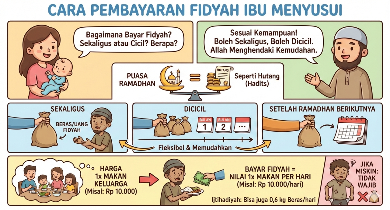 UNISMUH.AC.ID, MAKASSAR — Kewajiban fidyah bagi ibu menyusui yang tidak dapat menjalankan puasa Ramadhan kerap menimbulkan pertanyaan di tengah masyarakat. Mulai dari waktu pembayaran hingga besaran fidyah yang harus ditunaikan, semuanya menjadi perhatian, terutama menjelang dan setelah bulan Ramadhan. Dalam penjelasan keagamaan yang disampaikan melalui kajian fikih, pembayaran fidyah bagi ibu menyusui pada dasarnya disesuaikan