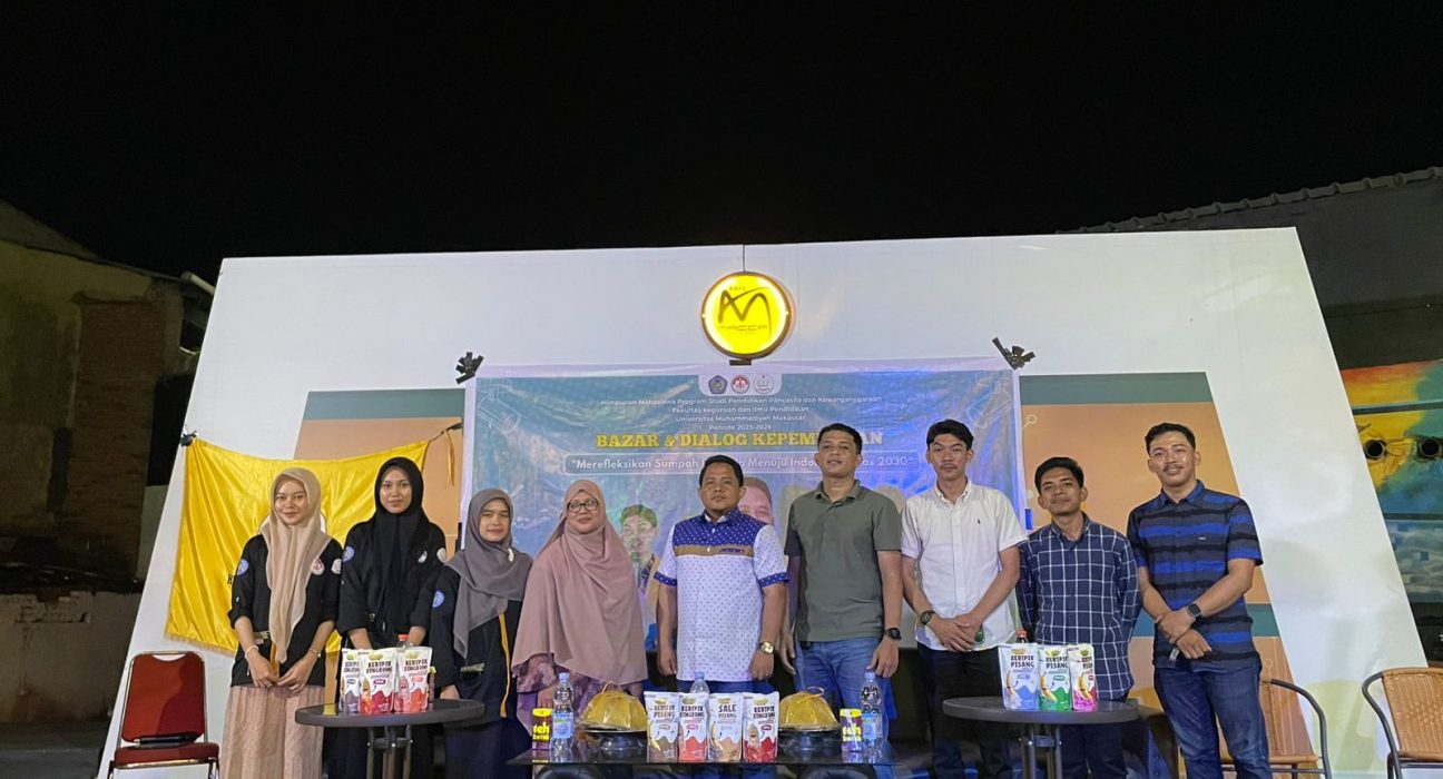 UNISMUH.AC.ID, MAKASSAR — Di Kafe Macca, Parangtambung, Selasa, 28 Oktober 2025, malam, Himpunan Mahasiswa Program Studi Pendidikan Pancasila dan Kewarganegaraan (HMP PPKn) FKIP Universitas Muhammadiyah (Unismuh) Makassar menggelar Bazar & Dialog Kepemudaan bertajuk “Merefleksikan Sumpah Pemuda Menuju Indonesia Emas 2030.” Acara yang terbuka untuk umum itu diisi dengan sambutan panitia, pimpinan himpunan, serta pihak program