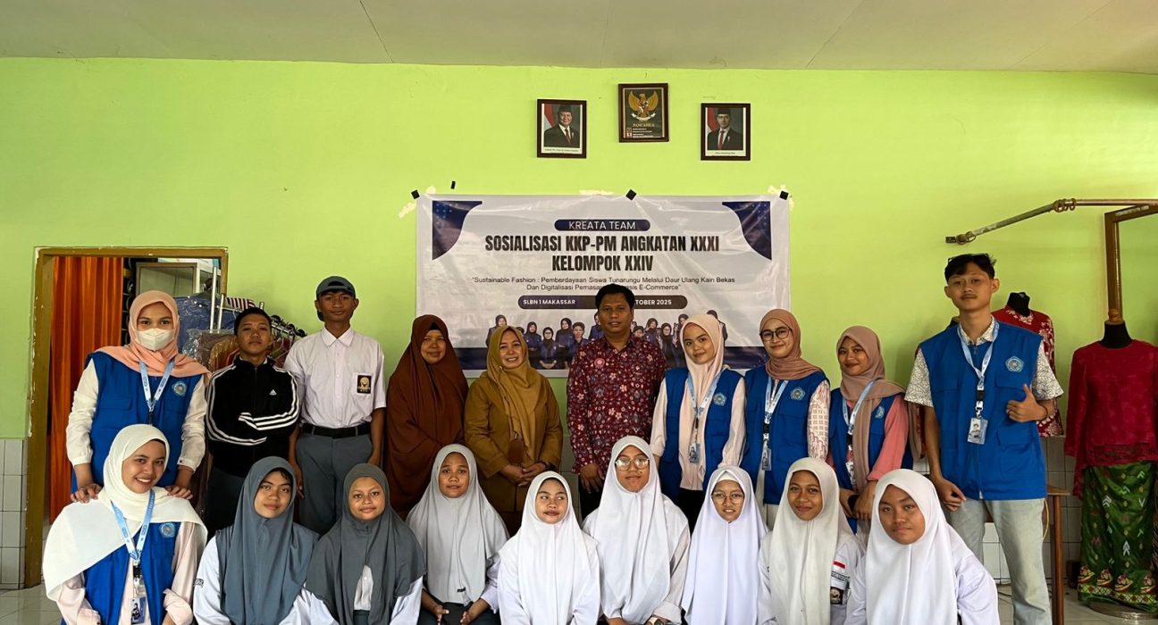UNISMUH.AC.ID, MAKASSAR -Kelompok 24 Kuliah Kerja Profesi dan Pengabdian Masyarakat (KKP-PM) Angkatan XXXI Fakultas Ilmu Sosial dan Ilmu Politik Universitas Muhammadiyah (Unismuh) Makassar meluncurkan program bertajuk “Sustainable Fashion: Pemberdayaan Siswa Tunarungu melalui Daur Ulang Kain Bekas dan Digitalisasi Pemasaran Berbasis E-Commerce”, di SLB Negeri 1 Makassar, Senin 25 Oktober 2025. Program ini menjadi langkah nyata