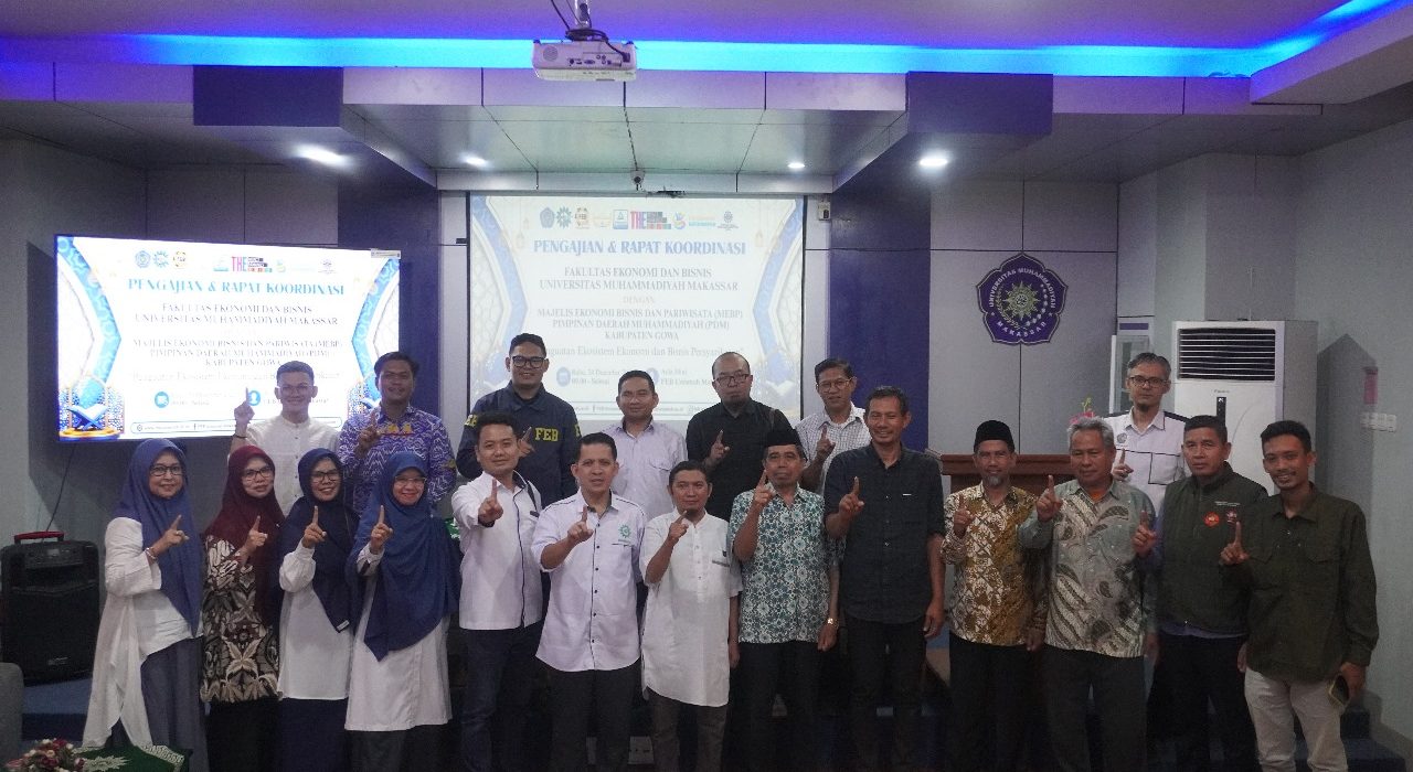 UNISMUH.AC.ID, MAKASSAR – Fakultas Ekonomi dan Bisnis (FEB) Universitas Muhammadiyah (Unismuh) Makassar menjalin kolaborasi dengan Majelis Ekonomi, Bisnis dan Pariwisata (MEBP) Pimpinan Daerah Muhammadiyah (PDM) Gowa melalui pengajian dan rapat koordinasi bertema Penguatan Ekosistem Ekonomi dan Bisnis Persyarikatan, Rabu, 24 Desember 2025.Kegiatan berlangsung di Aula Mini Lantai 8 Gedung Iqra, Kampus Unismuh Makassar. Kegiatan diawali
